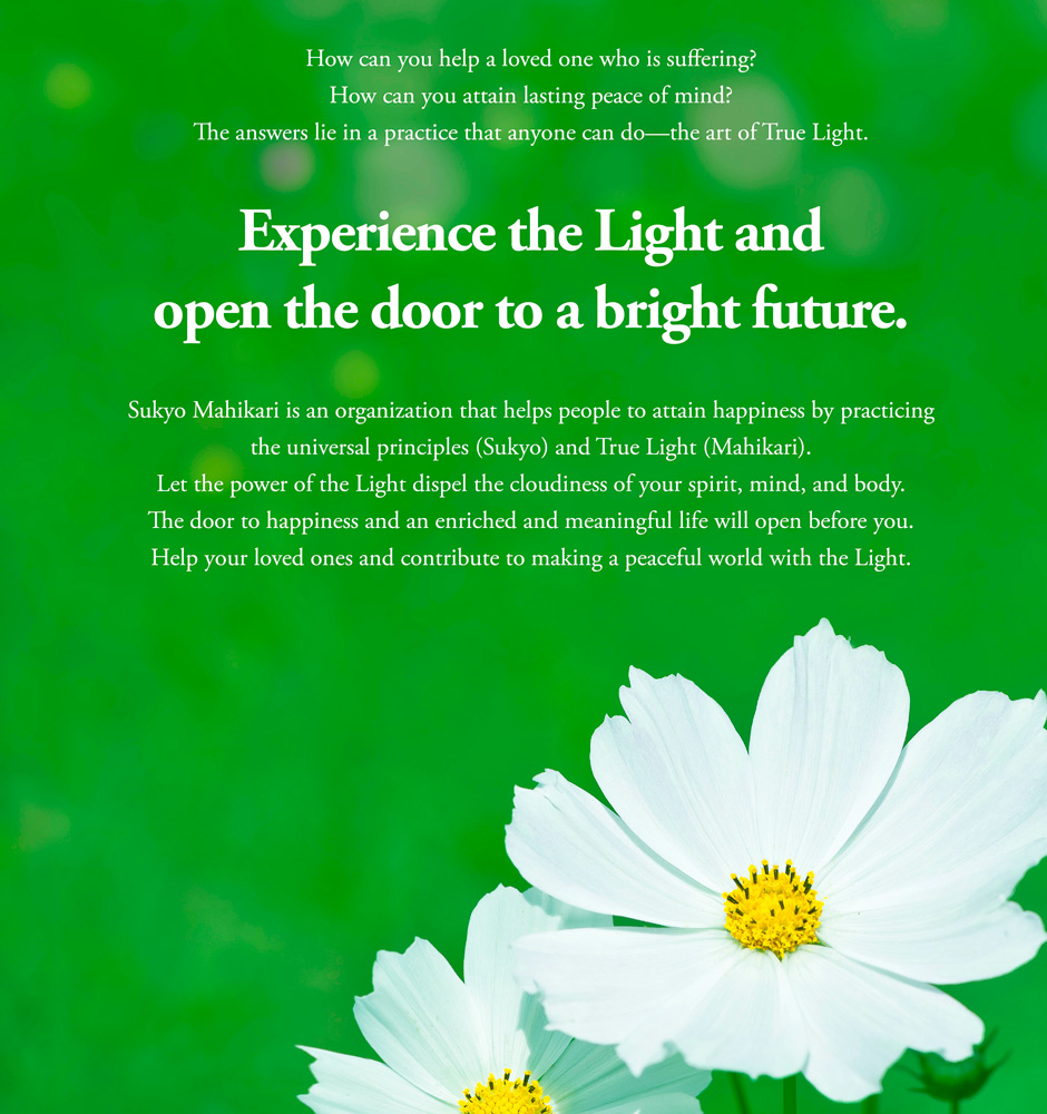 True Light radiated from the palm of the hand People do not need a high income to live a life of prosperity; in other words, prosperity is living a fulfilled life, avoiding wasteful expenditure, and freeing oneself of anxiety in the present and future. A truly prosperous life is free of attachment to materials and filled with gratitude for the blessings of life. A life of prosperity is an altruistic life that seeks to benefit the world and others—a life that will open the door to a bright future.